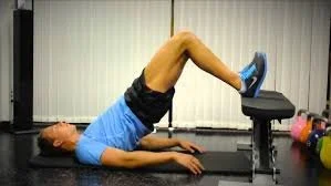 Lie on your back with your heels propped up on a bench/chair